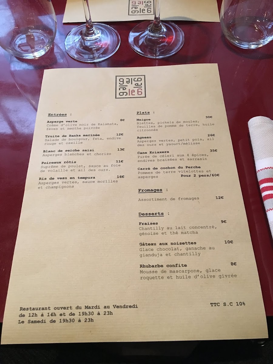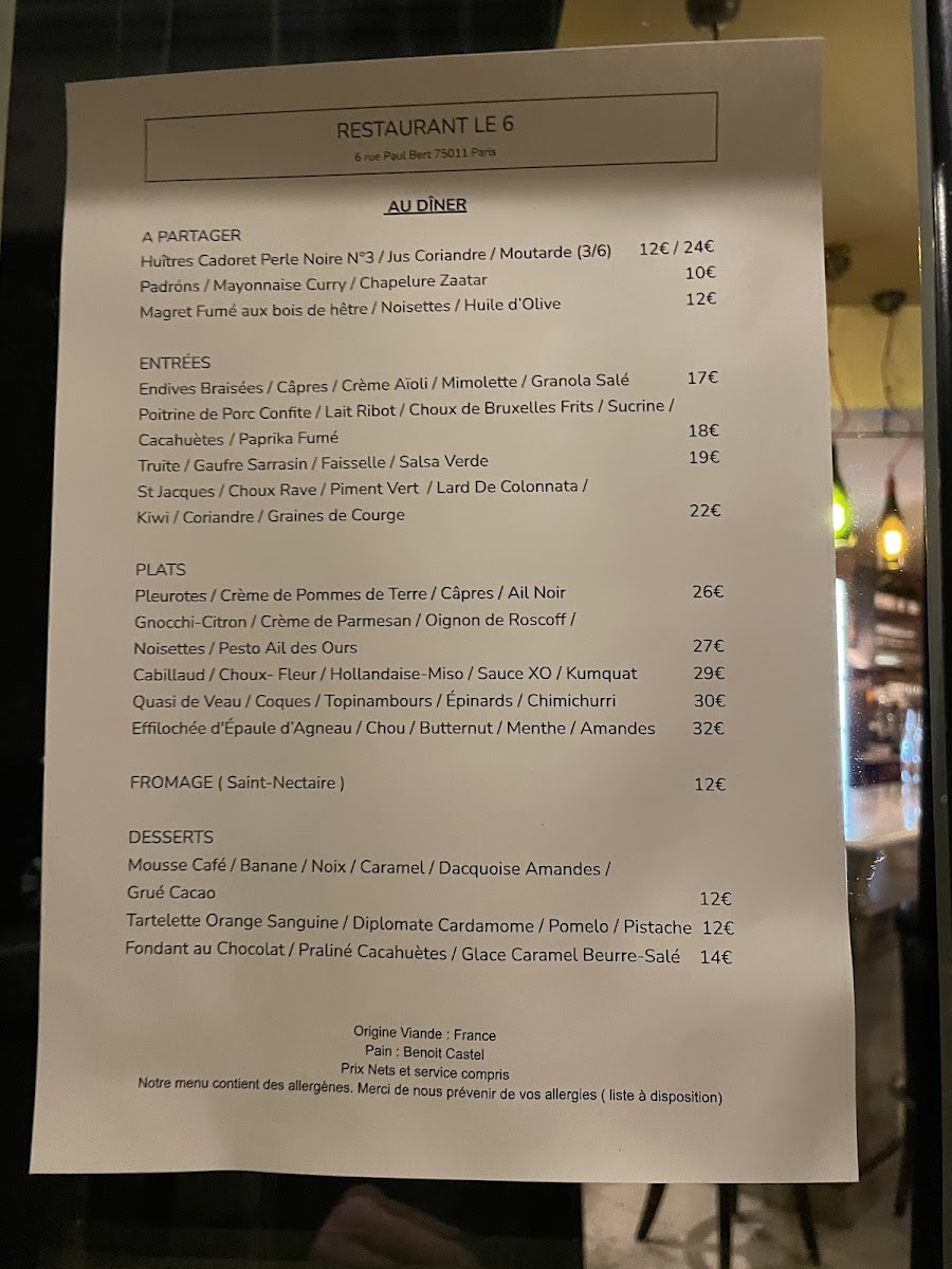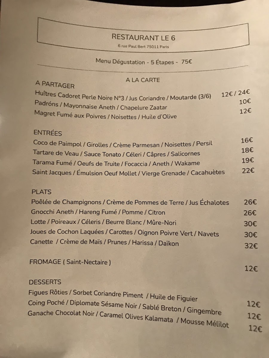 Introducing the Menu at Le 6 Paul Bert